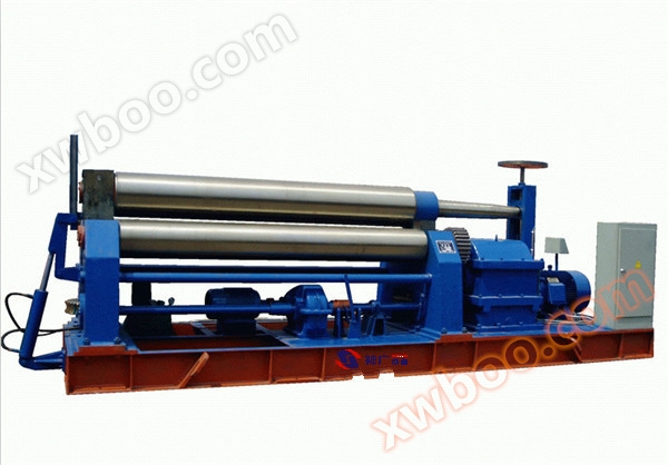 Rola superioară a mașinii de rulare simetrică acționează pe piston ca mișcare de ridicare verticală prin intermediul uleiului hidraulic din interiorul cilindrului hidraulic în pozițiile simetrice centrale ale celor două role inferioare, prin intermediul uneltelor finale ale reducetorului principal pentru a conduce mișcarea de rotație cooperativă a uneltelor de rulare inferioare pentru a furniza cuplu pentru plăcile de rulare. Specificațiile mașinii de rulare Placa de metal plastic plat prin rularea mașinii de rulare între cele trei role de lucru (două role inferioare, o rolă superioară), cu ajutorul presiunii inferioare a rolei superioare și a mișcării de rotație a rolei inferioare, astfel încât placa de metal să fie îndoită de mai multe ori în continuu (deformația compresiei interioare, stratul mediu neschimbat, deformația întinderii exterioare), deformația plastică producătoare, rularea în cilindrul necesar, cilindrul sau o parte a acestora. Dezavantajul acestei mașini hidraulice cu trei role este că capătul plăcii trebuie să fie pre-îndoit cu ajutorul altor echipamente. Această mașină de rulare este potrivită pentru mașini de rulare mari cu grosimea plăcii de peste 50 mm, două role inferioare adăugă un rând de role fixe pentru a scurta distanța dintre cele două role inferioare, îmbunătățind astfel precizia piesei de lucru rulate și performanța generală a mașinii.